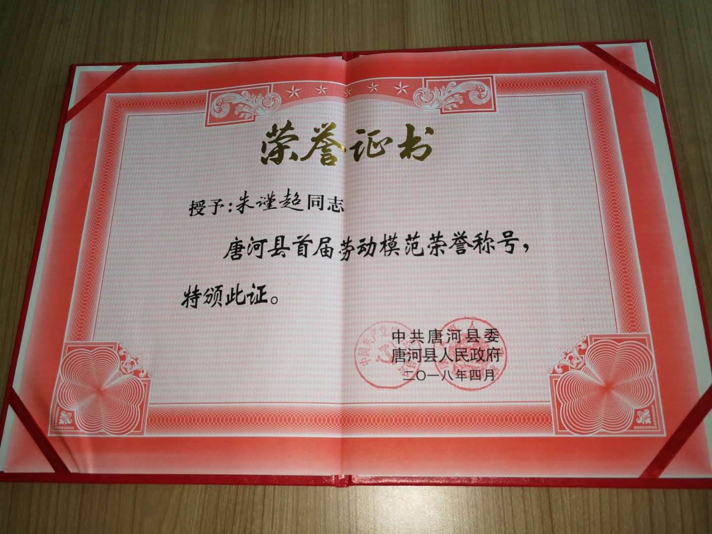 在“五·一”來臨之際,唐河縣委、唐河縣人民政府為首屆勞動(dòng)模范頒發(fā)了榮譽(yù)證書及獎(jiǎng)?wù)?。亞澳南?yáng)公司朱謹(jǐn)超同志喜獲殊榮。