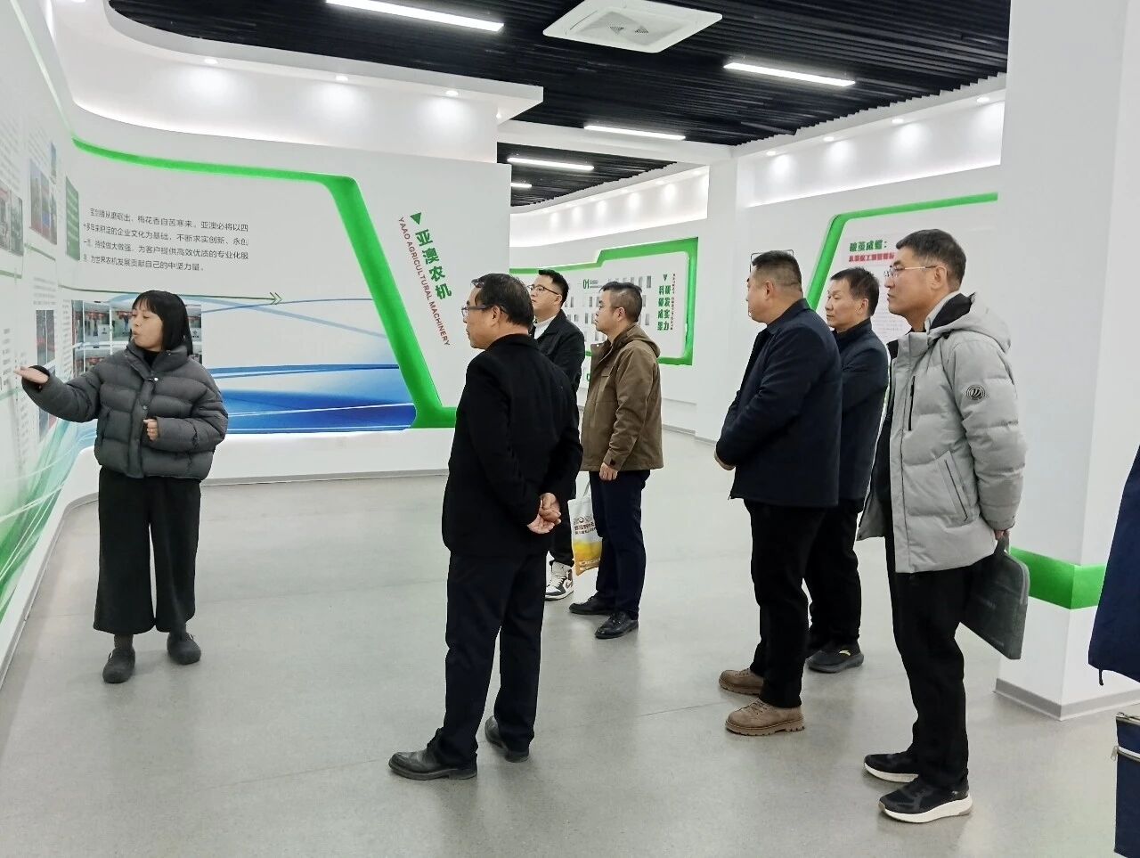 考察團先后走進企業(yè)文化展廳、產(chǎn)品展廳及核心生產(chǎn)線,通過實地觀摩智能農(nóng)機裝配流程、近距離查看新型農(nóng)機裝備性能、現(xiàn)場問詢技術(shù)研發(fā)細節(jié)等方式,全方位了解企業(yè)在生產(chǎn)制造、技術(shù)創(chuàng)新、文化建設(shè)等方面的發(fā)展成果。
