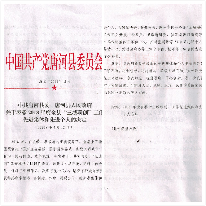 4月12日,唐河縣召開2018年度“三城聯(lián)創(chuàng)”總結(jié)大會(huì)。大會(huì)宣讀了表彰先進(jìn)集體及先進(jìn)個(gè)人的決定。亞澳農(nóng)機(jī)獲得2018年度國(guó)家園林縣城創(chuàng)建工作先進(jìn)集體。