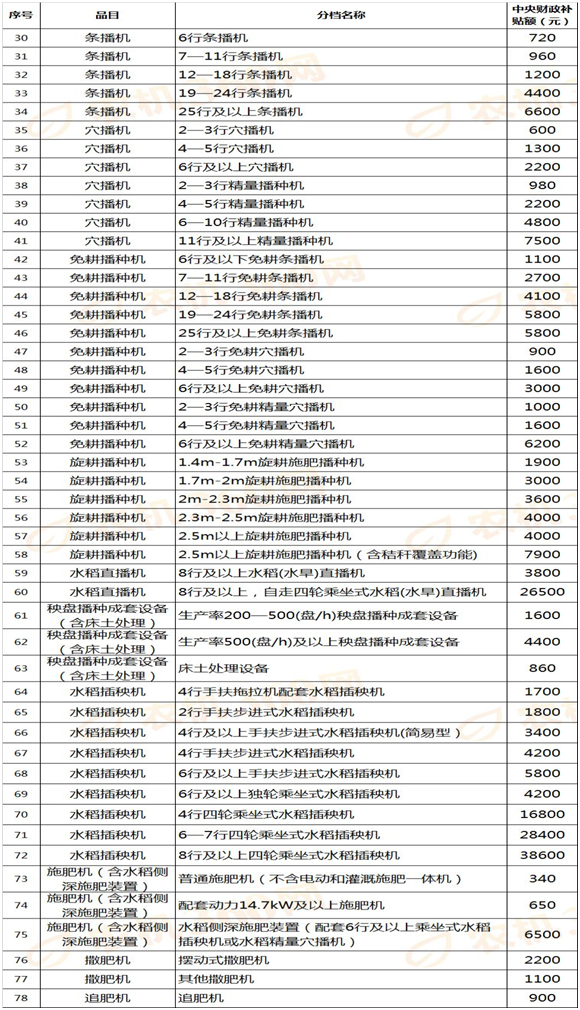 "備注:對穴播機品目先按排種器形式分檔,其中精量排種器包括氣力式和達到精量要求的指夾式,其他列為普通型式;